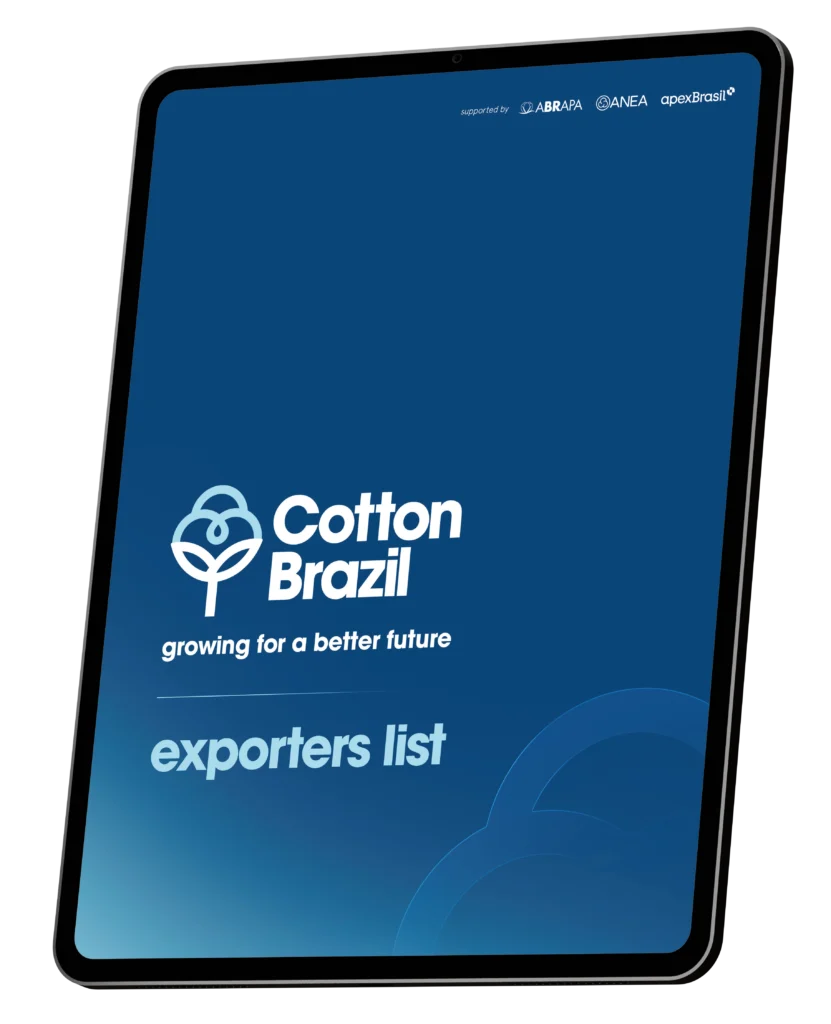 Cotton Brazil is an initiative of Abrapa (the Brazilian Cotton Producers Association), ANEA (the Brazilian Cotton Shippers Association), and ApexBrasil (the Brazilian Trade and Investment Promotion Agency).